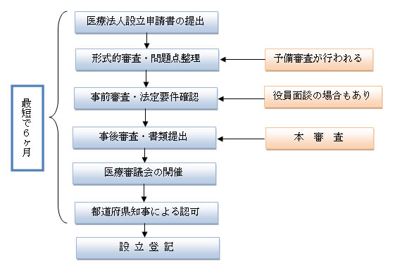 一人医師医療法人も医療法人であることから、医療法の定める手続きにより許認可申請を行う必要があります。医療法人を設立するには、都道府県知事の認可が必要です(医療法44条1項)。また、医療法人の設立受付けは年に2回しかありません。すなわち、いつでも設立したい時期に設立することは不可能です。