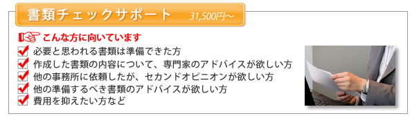 | ※他に必要な書類のアドバイス・収集については、別途費用が発生します。 |