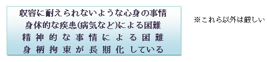 これらに準ずる身体的事情以外の理由で仮放免の許可を得ることは相当困難と思われます。