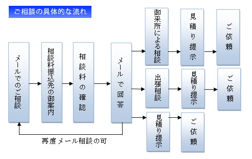 ※メール回答の後で、御来所・出張相談の場合も別途相談料を頂戴いたします。